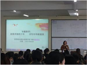 本次示范课由石霞老师主讲。今年恰逢改革开放四十周年,为纪念改革开放这一深刻改变中国、深刻影响世界的决定中国命运的关键抉择,石霞老师对此作为专题进行讲授,授课题目为《改革开放四十年,书写中华新篇章》。在教学设计上,石霞老师主要从开启伟大历程、点赞伟大成就、全面深化改革、全面扩大开放四个方面进行讲述。在讲课过程中,石霞老师整堂课思路清晰,认真投入,课堂气氛活跃,寓教于乐,激发学生学习兴趣。此次授课得到了在场专家和教师的一致好评。
