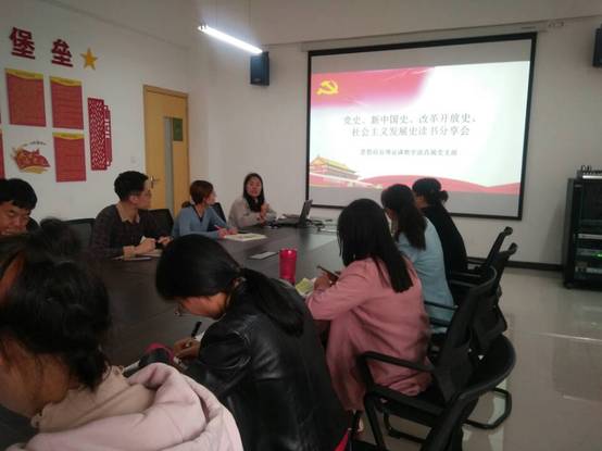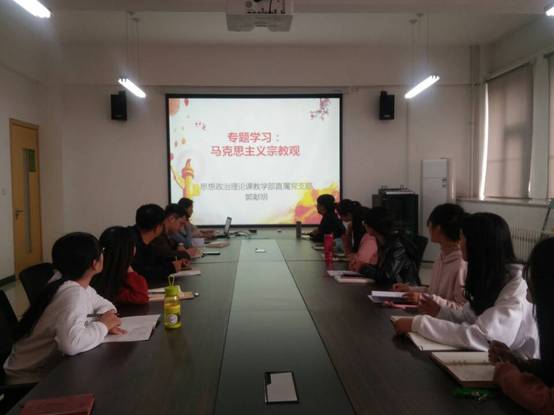 10月14日下午,思想政治理论课教学部直属党支部在党员活动室开展马克思主义宗教观专题党课和“四史”读书分享会活动。本次活动由直属党支部负责人郭献明主持,支部全体教师党员参加。