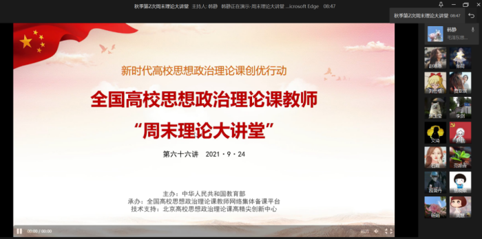 其他老师纷纷表示:“周末理论大讲堂”为思政课教师理论知识的提升提供了一个很好的平台,通过聆听专家讲课,让自己在思想政治理论方面的知识获得感更多,专业理论水平也有较大提升。