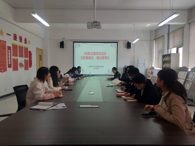 4月18日下午,马克思主义学院直属党支部开展了以“法在我身边,遵法我带头“的主题党日活动,会议由范艳香同志主持。