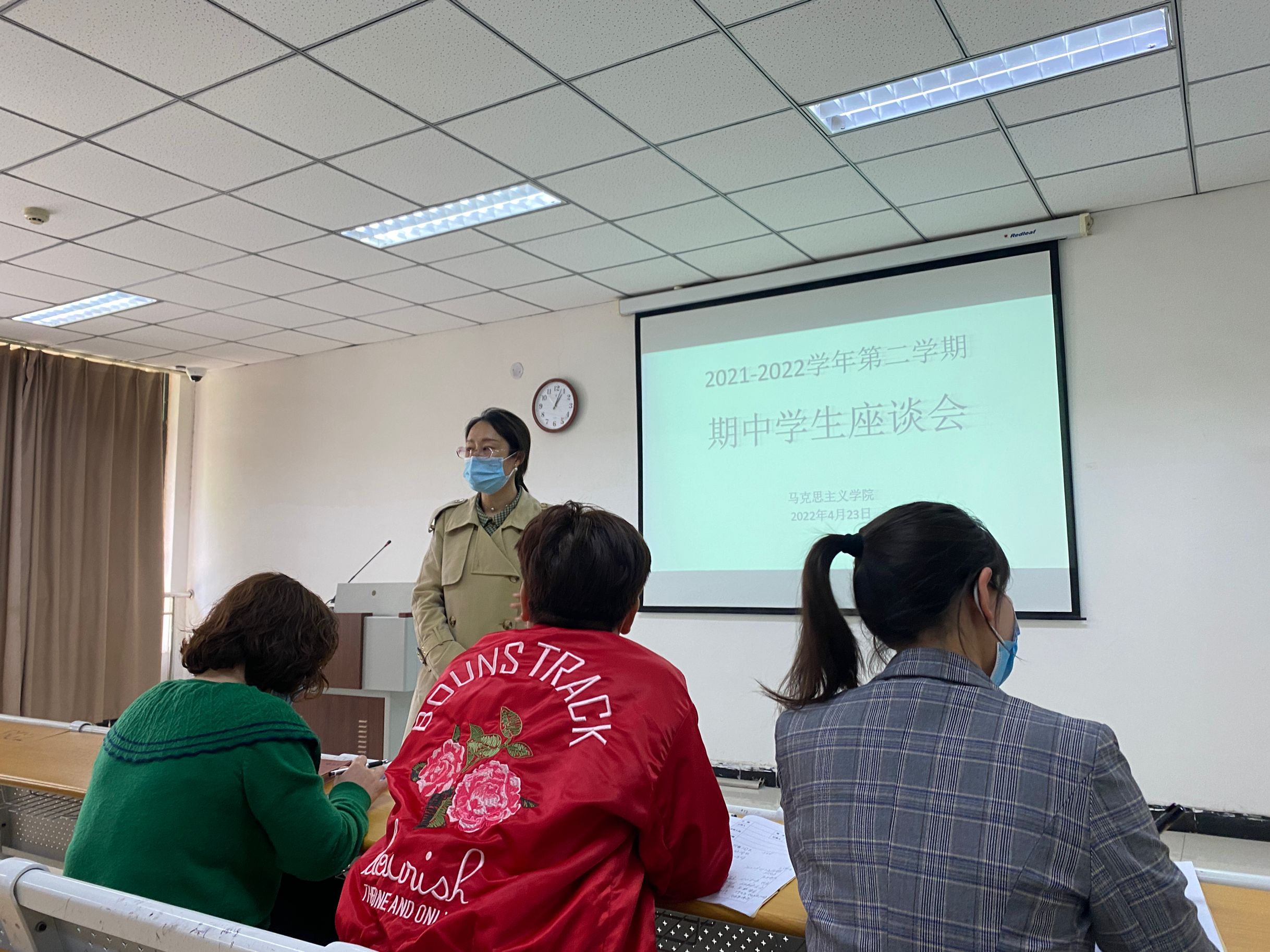 4月23日,我校2021-2022学年第二学期马克思主义学院期中学生座谈会在谨学楼C102教室召开。马克思主义学院老师及各专业20级,21级教学信息员参会。会议由马克思主义学院范艳香老师主持。
