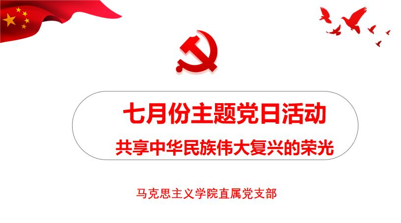 7月1日下午,马克思主义学院直属党支部开展了“共享中华民族伟大复兴的荣光”主题党日活动,会议由范艳香同志主持。
