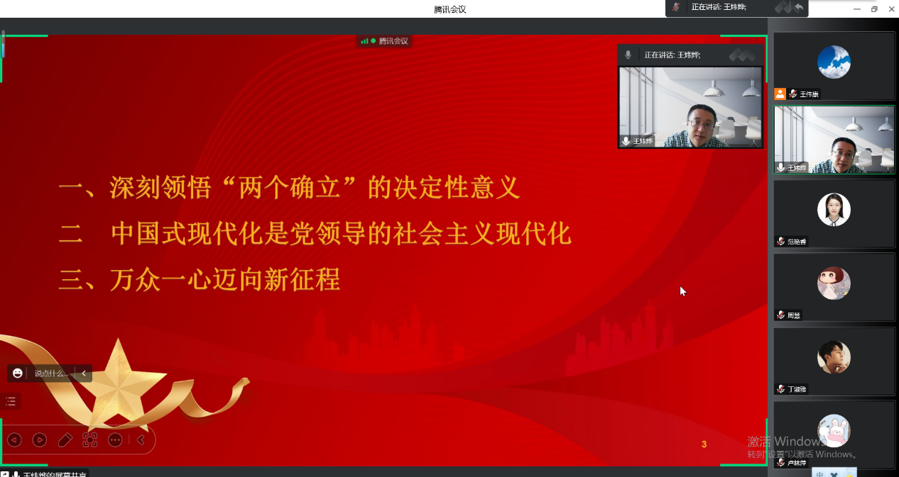 11月24日,马克思主义学院直属党支部在线上以腾讯会议的方式开展党课,马克思主义学院院长王炜烨同志为本次党课的主讲人,全体教师党员参加。