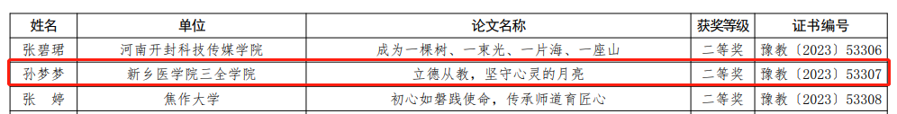 经学校遴选和推荐,省教育厅组织专家评审等环节,其中,我院青年教师孙梦梦的作品荣获征文二等奖。
