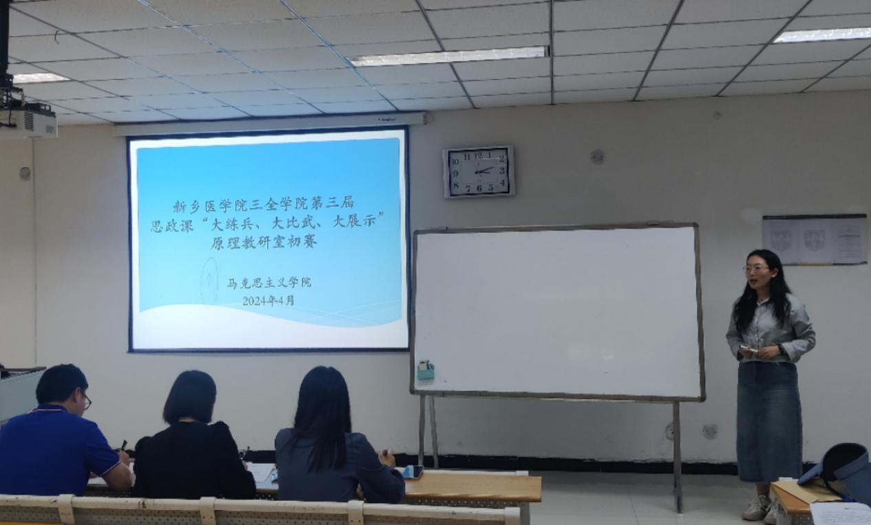 为深入贯彻落实习近平总书记在学校思想政治理论课教师座谈会上的重要讲话精神,根据省委教育工委、省教育厅通知要求,按照学校教学工作安排,原理教研室于4月26日组织开展2024年度思想政治理论课教学技能“大练兵 大比武”初选工作,教研室全体教师参加此次活动。