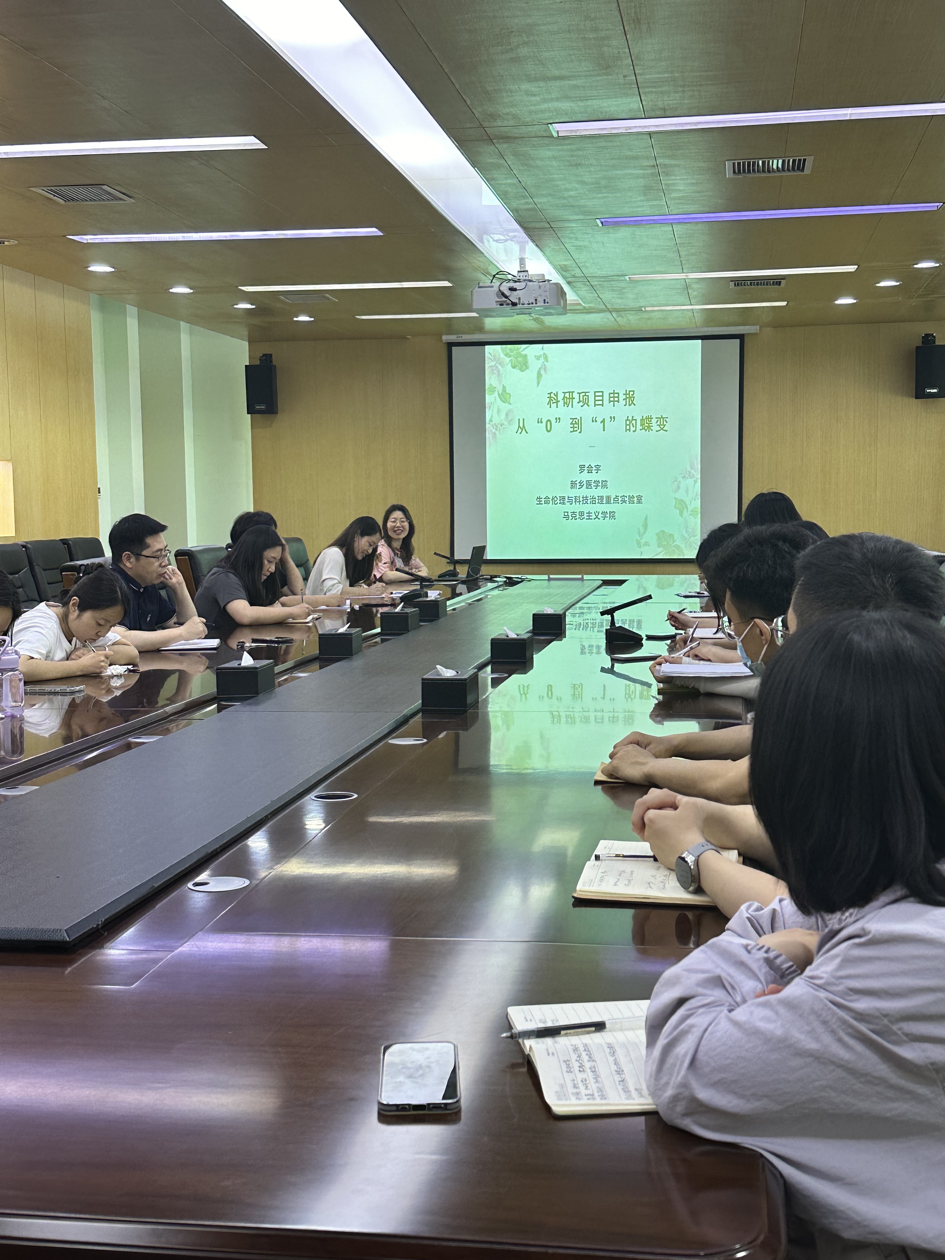 为更好营造我院科研学术氛围,不断培养青年教师自主创新科学素养,配合科研部科研活动月工作,于5月23日上午,我院邀请到新乡医学院罗会宇副教授在行政楼第三会议室,开展了科研项目申报从“0”到“1”的蝶变的专题讲座。讲座由马克思主义学院负责人范艳香主持,马院全体教师及学校相关教师参加学习。