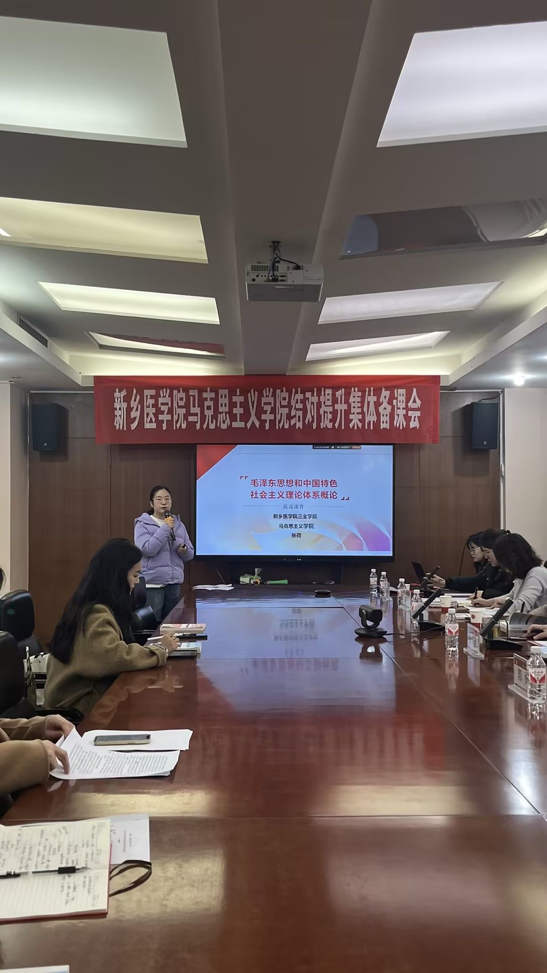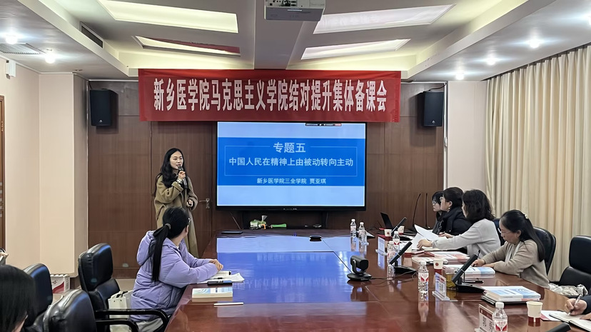 为深入学习贯彻习近平总书记关于思政课建设的重要指示精神,充分发挥示范性马克思主义学院的示范引领和辐射带动作用,推动新时代思政课内涵式发展,全面提升马克思主义学院建设整体水平,根据省委宣传部、省委教育工委、省教育厅《关于印发<河南省高校马克思主义学院结对提升工作方案>的通知》 (豫教工委〔2024〕 175 号)要求,2月21日,我院参加了兄弟院校新乡医学院召开的结对提升集体备课会。