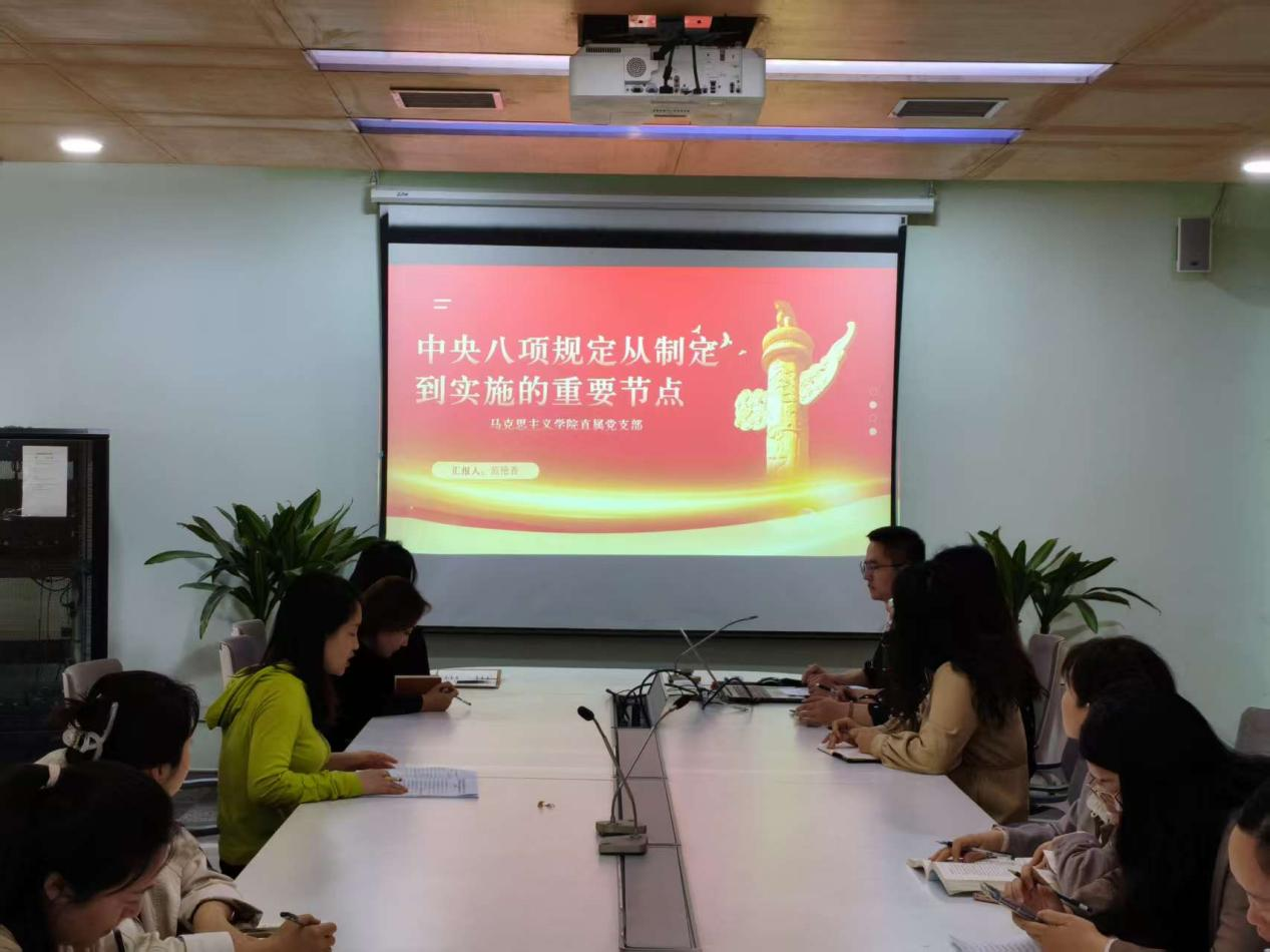 4月17日,马克思主义学院直属党支部在第四会议室开展了“全面落实中央八项规定精神 进一步推进作风建设走深走实”的主题党日活动,并采用“领学+研讨”的方式进行政治理论集体学习,此次学习活动由直属党支部副书记范艳香主持,马克思主义学院直属党支部全体党员参加。