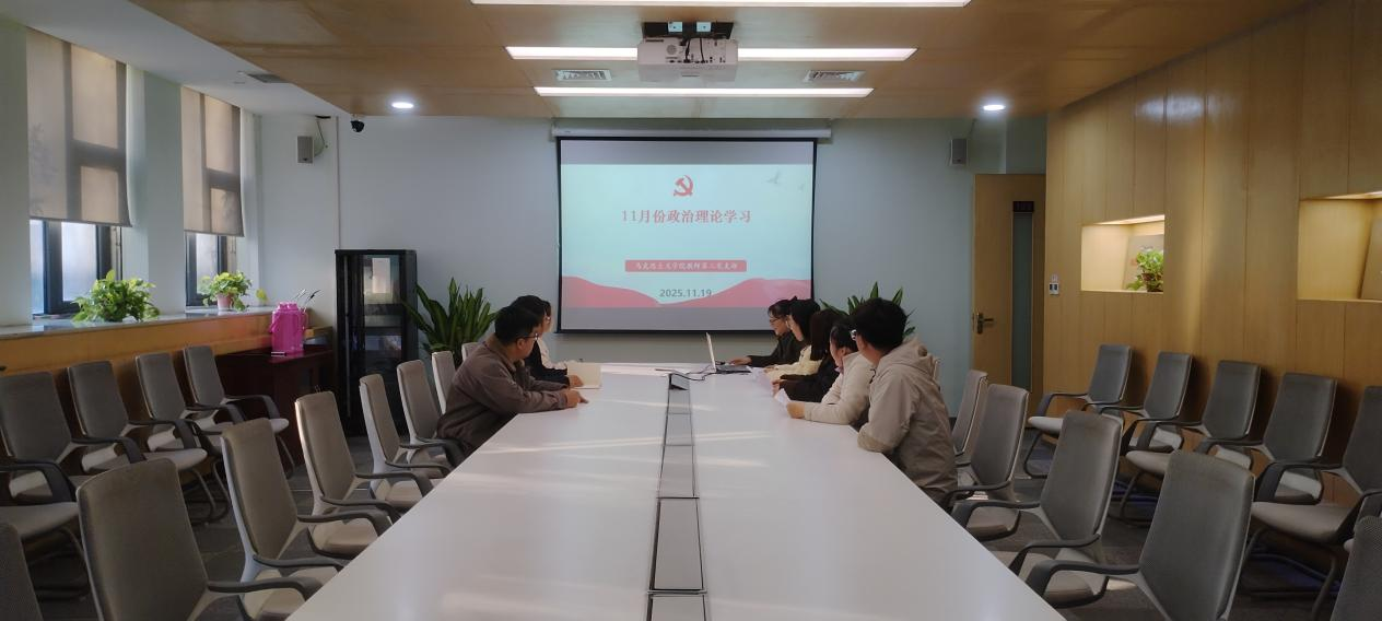 11月19日,马克思主义学院教师第三党支部开展了十一月“深入学习贯彻党的二十届四中全会精神”主题党日活动,并采用“领学+研讨”的方式进行政治理论集体学习,会议在行政楼第四会议室召开,由党支部书记王桂琴主持,马克思主义学院教师第三党支部全体党员参加。