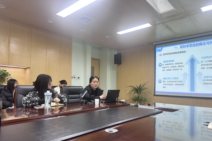 会议伊始,杨翠苹致辞,强调提升科研项目申报质量对学院学科建设与教师发展的重要意义。她指出,软科学研究与马克思主义学院的学科特色高度契合,期望全体教师把握学习机会,提高项目申报水平。