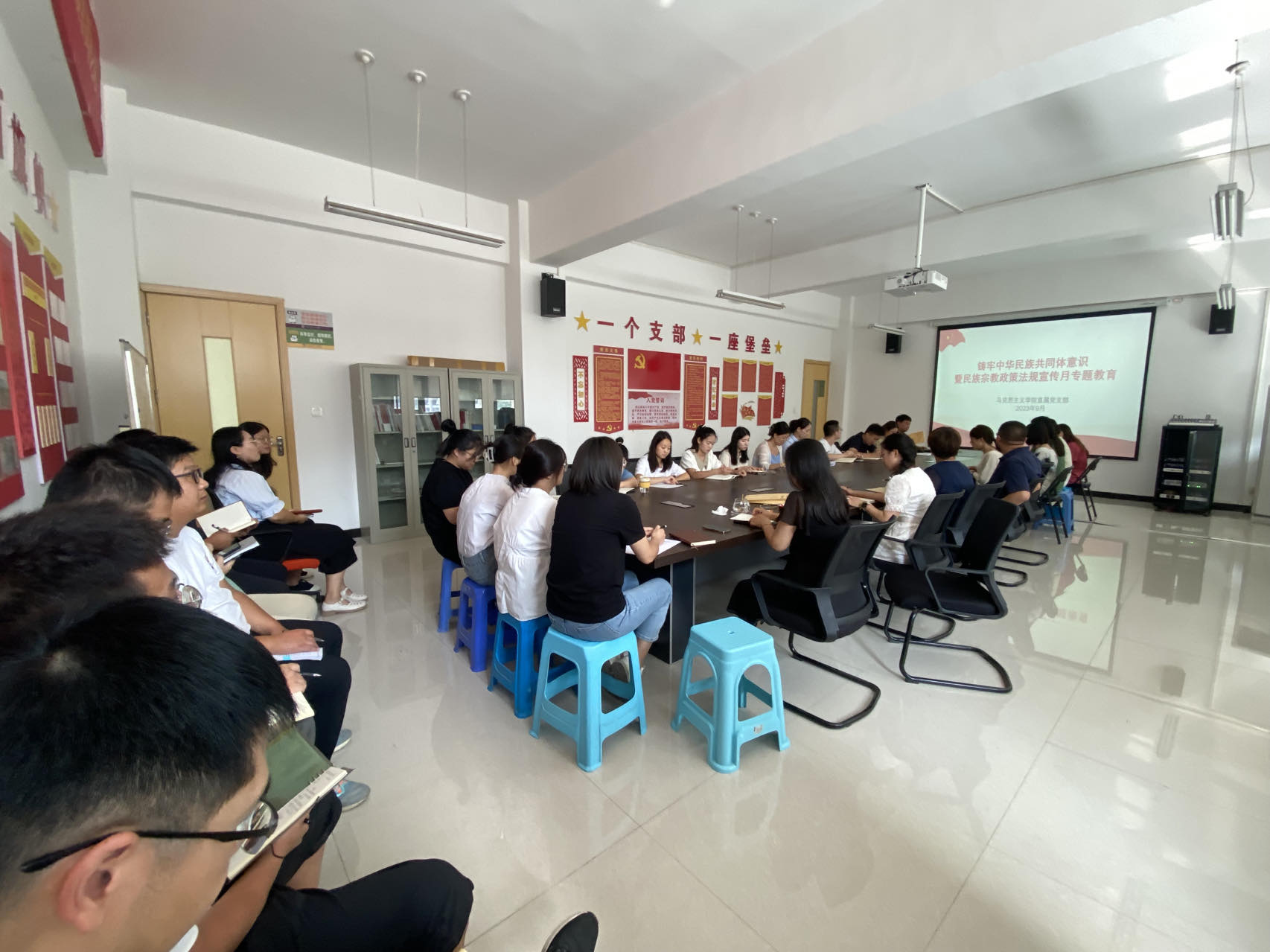 9月7日,马克思主义学院直属党支部在行政楼二楼会议室开展“铸牢中华民族共同体意识暨民族宗教政策法规宣传月”活动,会议由范艳香同志主持,马克思主义学院全体党员参加。