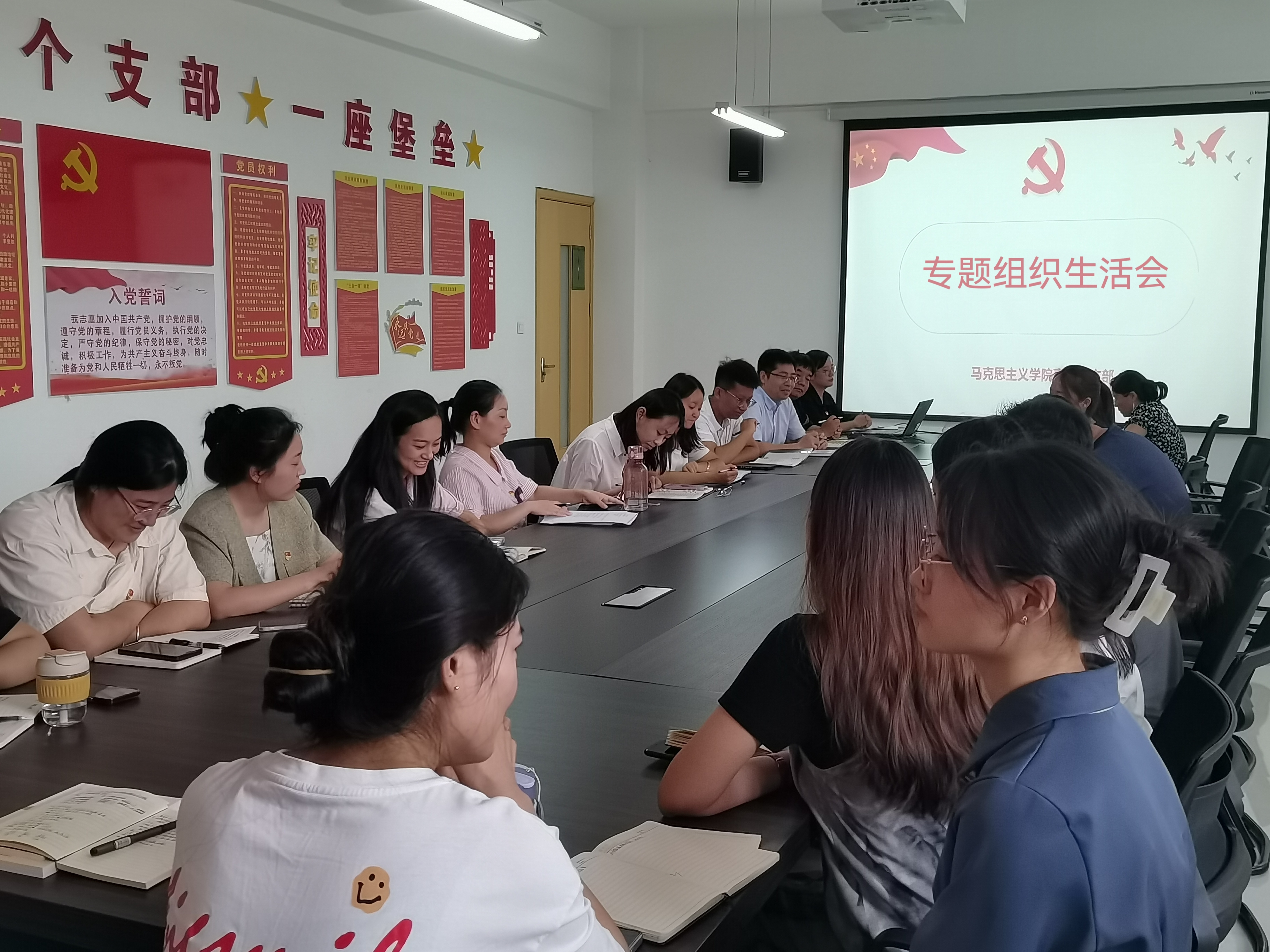 2023年9月5日,马克思主义学院直属党支部在行政楼二楼党员会议室召开专题组织生活会。马克思主义学院直属党支部全体党员参加会议,党支部副书记范艳香主持会议。