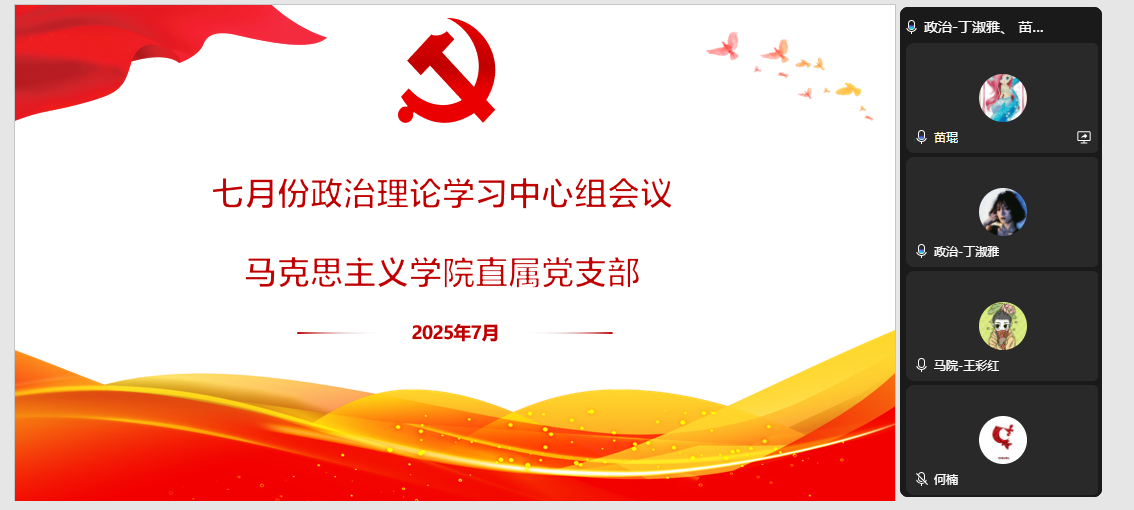 7月15日,马克思主义学院直属党支部中心组7月份政治理论学习会议在腾讯会议线上召开,本次学习采用“领学+研讨”的方式进行。