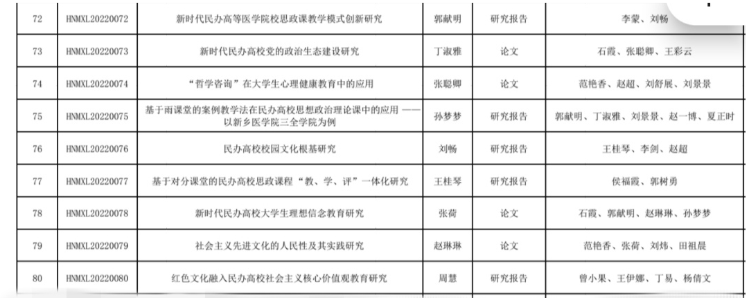 根据河南省民办教育协会《关于2022年度调研课题立项的通知》(豫民教协〔2022〕2号)文件,我院9个项目获批立项。我院获批2022年度河南省民办教育协会调研课题名单如下: