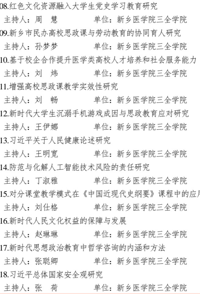 根据新乡市社会科学联合会《关于公布2022年度调研课题立项结果的通知》(新社联字〔2022〕18号)文件,我院11个项目获批立项。我院获批2022年度新乡市社科联调研课题名单如下: