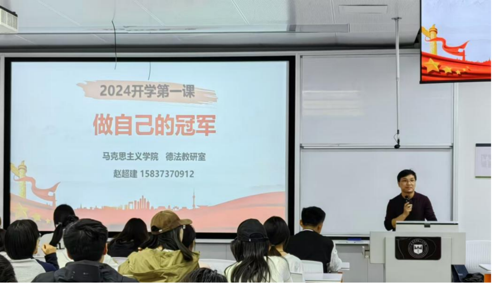 为深入学习贯彻党的二十届三中全会精神,和全国全省教育大会精神,落实立德树人根本任务,10月8日,思想道德与法治课以“做自己的冠军”为主题,为2024级新生讲授“开学第一课”。